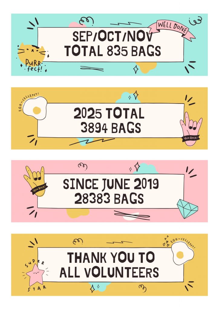 Don’t forget to tell us how many bags you collect and which area you’ve cleared plus any photos (we love photos) – via Facebook – and we will add them to this years totals.